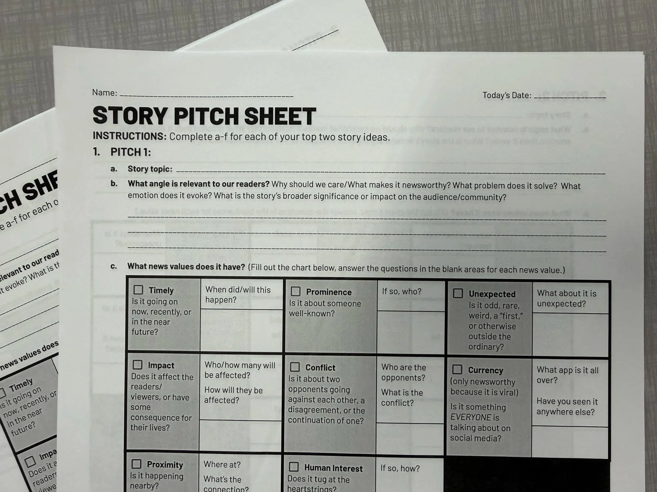 Each staff member is given a sheet to explain their story idea and dissect it’s news values, ensuring each pitch is valuable.
