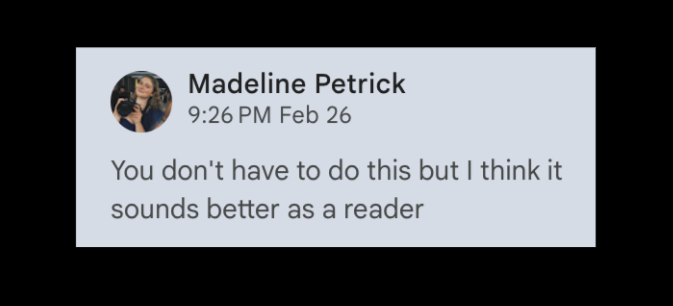 “Madeline has not only set the standard for excellence but has also elevated the class through her leadership. She leads by example—mentoring her peers and editing every piece with a discerning eye…Madeline is a natural leader in a group and inspires a team culture rooted in trust, creativity, and mutual respect. Madeline’s storytelling stands apart for its depth, clarity, and emotional resonance… Madeline is the type of person who makes every team stronger. Her mix of leadership, creative vision, and collaborative energy will no doubt continue to leave an impact wherever she goes…She thrives under pressure, adapts quickly, and works seamlessly within a production team—a skill set that mirrors professional newsroom standards.”